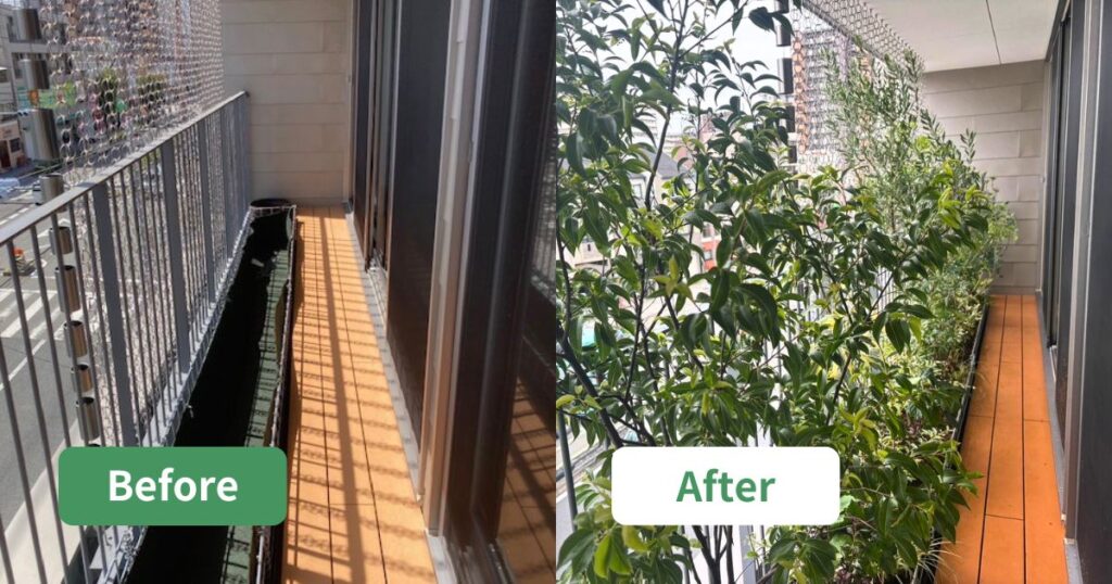 大きく育ちすぎたオリーブの木を、自然な樹形を活かしながら透かし剪定しました。風通しが良くなり、全体のバランスも整ったことで、オリーブの木がすっきりと美しい印象に生まれ変わりました。